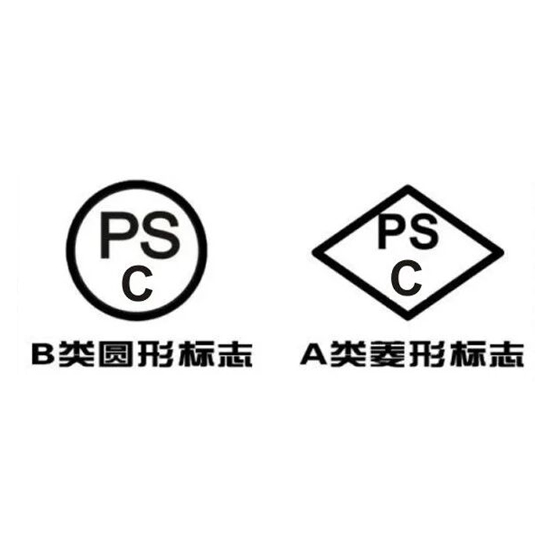 圆形标识:PSC圆形标识是针对“指定产品”的强制性标识。如:家用高压锅、机动车头盔、登山用绳索、燃油热水器、燃油锅炉和燃油取暖器等。产品打圆形PSC标志。